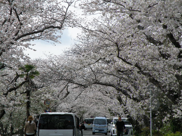 今までは右岸は途中まででしたが、結構な距離の桜並木でした。で、ちょっと疑問が湧いてきました。「左岸より右岸の方が桜並木の距離が長くない?」
