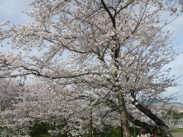河川敷にはお花見の行楽客もかなりいて、それぞれがお花見を楽しんでいました。