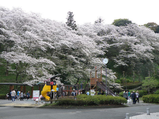 この日、私が訪れたのは午後4時くらい、気温が19℃とやや肌寒く感じました。それでも園内の桜は満開なので、親子連れなど老若男女問わず人通りは多かったです。