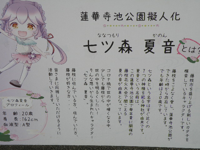 蓮華寺池公園には公園を擬人化する(?)キャラクター七ツ森夏音(ななつもりかのん)というキャラクターがいるようです・・・!?よくわからないけど・・・。